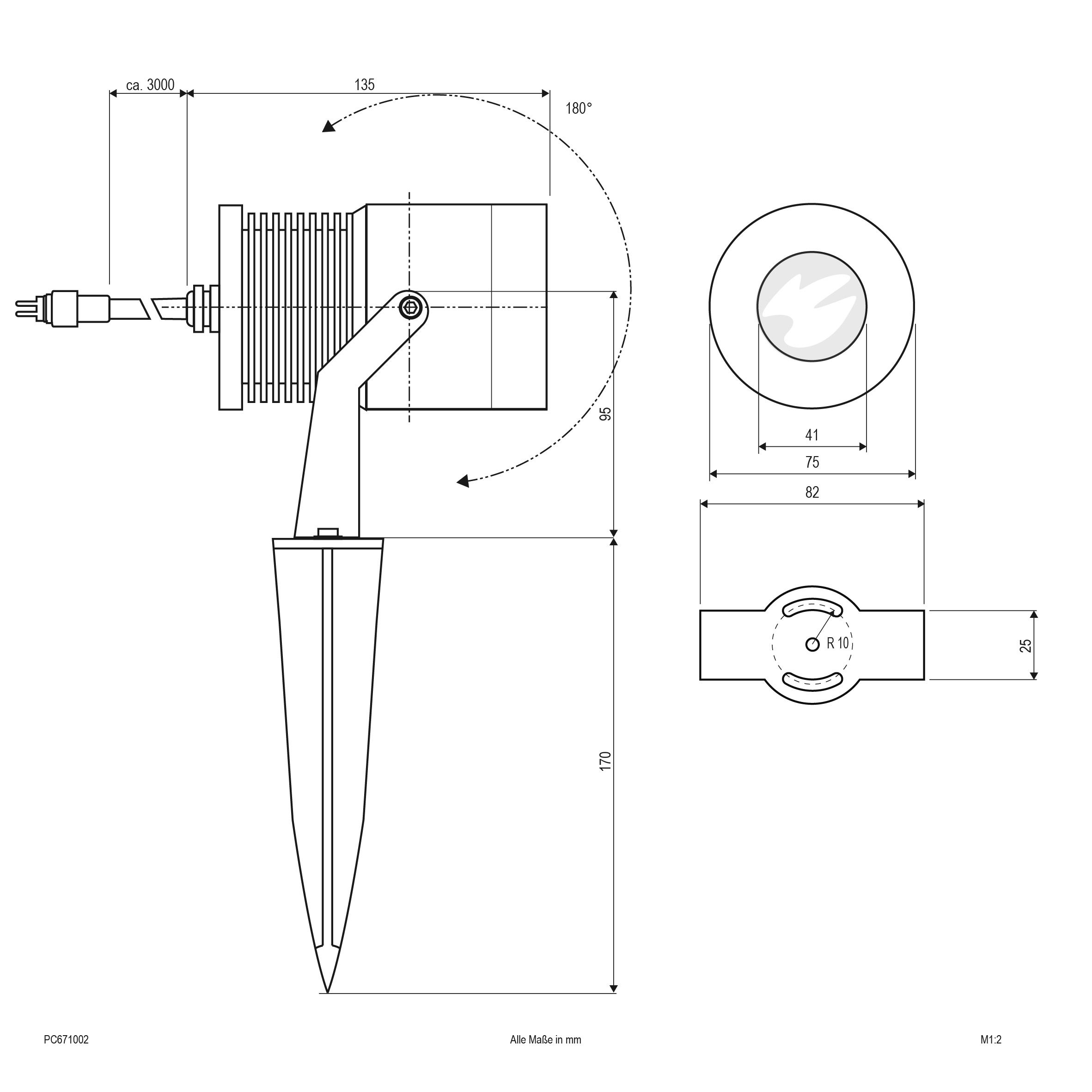 Reflektor ogrodowy LED z kolcem uziemiającym i przewodem przyłączeniowym do systemu wtykowego IP44 24VGłowica reflektora ogrodowego LED z aluminium może być obracana o 90° (z zamontowanym kolcem uziemiającym), a także odchylana o 45°. Do reflektora dołączony jest 3-metrowy kabel przyłączeniowy z wtyczką do systemu wtykowego IP44. Wejście kabla do oprawy odbywa się poprzez dławik kablowy. Dzięki przygotowaniu do systemu wtykowego IP44 można bez problemu instalować również większe systemy.- Wyposażona w uchwyt (może być również stosowana bez kolca uziemiającego)- Kąt wiązki: 21° do 40°- Odpowiedni zasilacz do systemu wtykowego należy zamówić osobno (akcesoria)