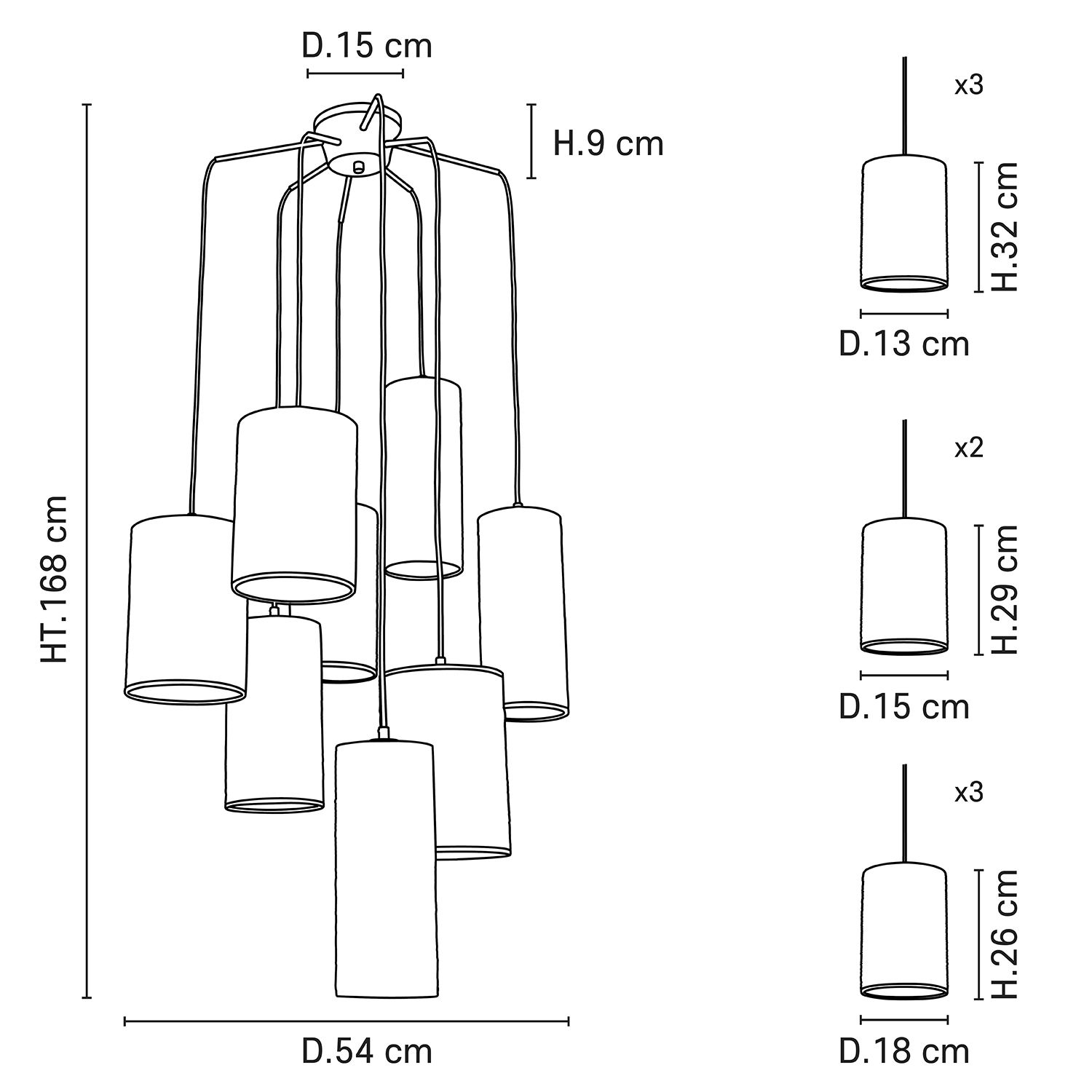 - Żarówki: 8 x 40 W