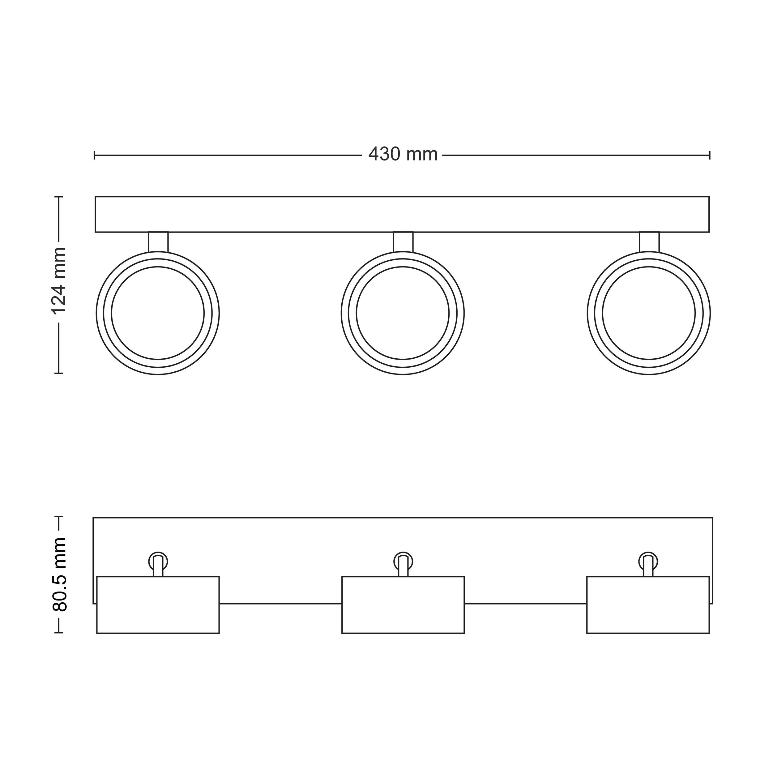 Trzy regulowane punkty reflektora sufitowego LED Bracia emitują ciepłą biel pod szerokim kątem, dzięki czemu każde pomieszczenie jest doskonale oświetlone. Reflektor LED został wykonany z aluminium i oprócz doskonałej efektywności energetycznej charakteryzuje się również długą żywotnością. W pomieszczeniach mieszkalnych, kuchni, przedpokoju, a nawet sypialni 3-punktowy reflektor zapewnia dobre warunki oświetleniowe i bardzo przyjemne dla oczu światło, które spełnia opracowane przez firmę Philips kryteria Eye Comfort dotyczące oświetlenia nieobciążającego wzroku.