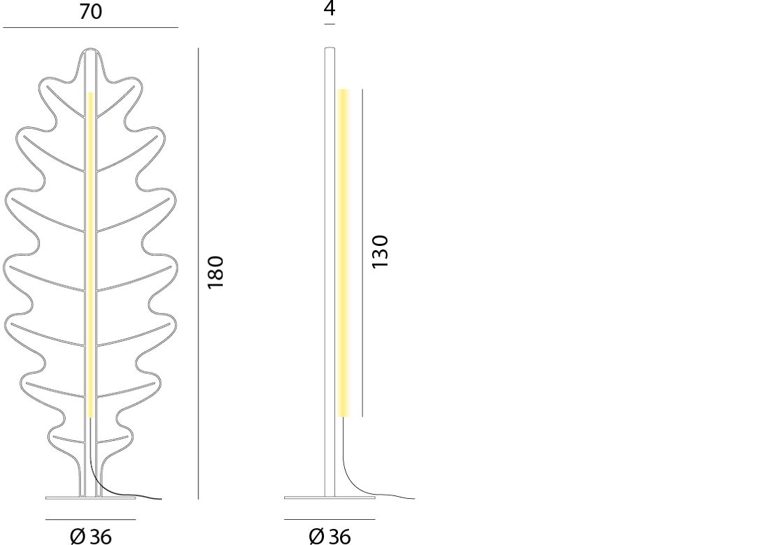 Ściemniana designerska lampa stojąca LED z kolekcji Eden w kształcie liścia dębu Włoscy projektanci Giovanni Lauda i Dante Donegani zaprojektowali tę lampę podłogową z myślą o stworzeniu przestrzennego raju dobrego samopoczucia. Pręt ze źródłami światła LED tworzy przytulną atmosferę dzięki barwie światła ciepłej bieli i jasności, którą można regulować za pomocą ściemniacza dotykowego. Przyczynia się do tego również tekstylny korpus, którego właściwości dźwiękochłonne mają decydujący wpływ na akustykę pomieszczenia. Magnetycznie przymocowany pręt LED można w razie potrzeby zdemontować, zmieniając Oak w obiekt o czystym designie. Niezależnie od swojej funkcji, lampa stojąca w kształcie dużego liścia dębu jest idealnym elementem przyciągającym wzrok w nowoczesnych, wysokiej jakości salonach i pokojach dziennych.