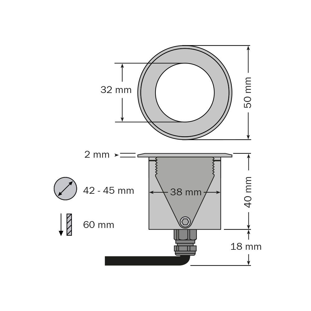 - Oprawa z 5-metrowym kablem przyłączeniowym i wtyczką 24 V oraz 2-drożnym rozdzielaczem kablowym - Działanie możliwe tylko w połączeniu z zestawem startowym (patrz akcesoria) - Stopień ochrony: IP68 - Odporność na uderzenia: IK08 - Może być używana na stałe pod wodą do maks. głębokości 1 m - Temperatura otoczenia podczas pracy: - 25 °C do + 50 °C - Udźwig: maks. 3 t