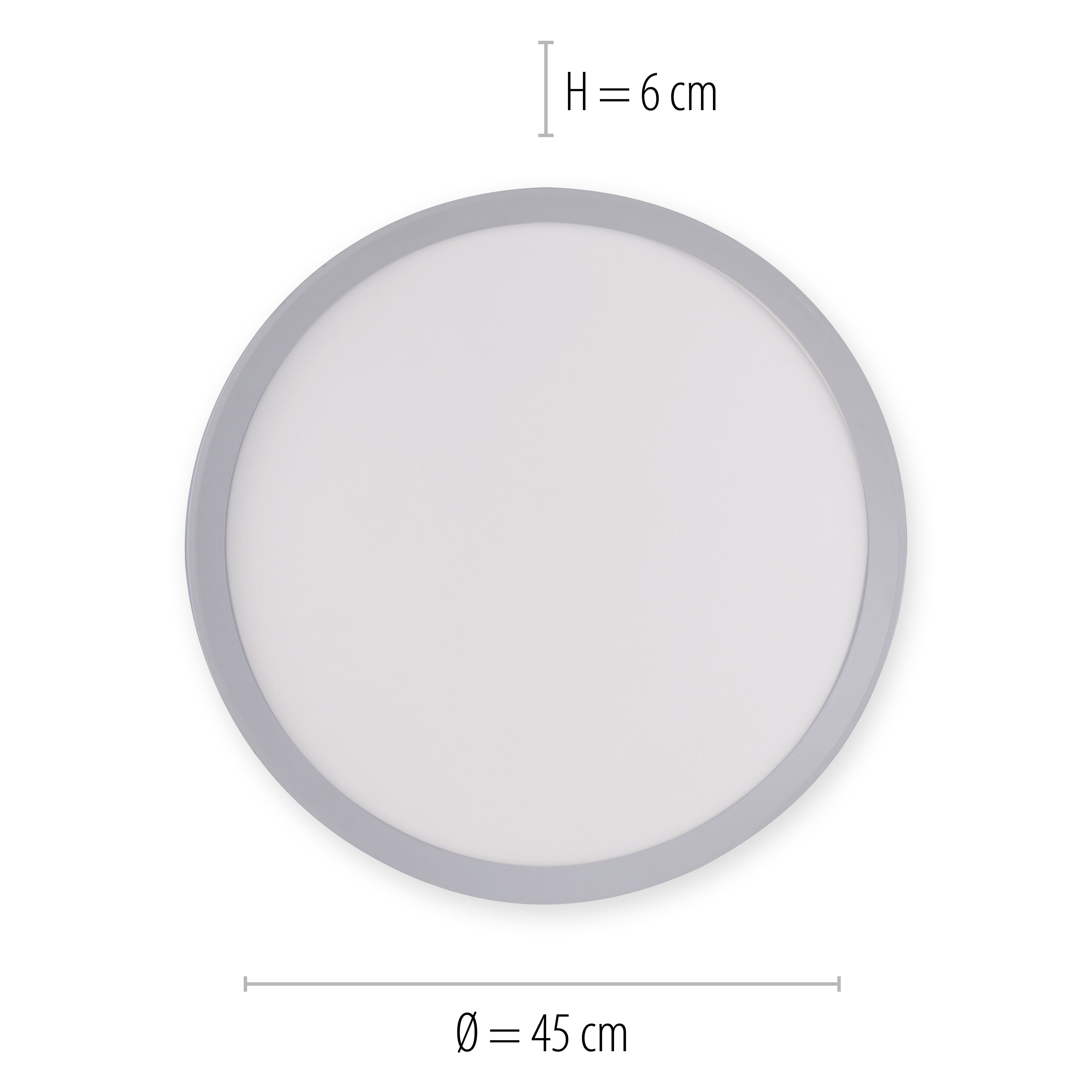 Piękne efekty świetlne i indywidualne oświetlenie w zależności od pory dnia lub nastroju - to właśnie oferuje lampa sufitowa LED Galactica, której nie powinno zabraknąć w żadnym domu. Składa się z okrągłej płyty sufitowej i osadzonego w niej dysku dyfuzyjnego, który zapewnia nieoślepiające oświetlenie. Wokół płyty sufitowej znajduje się drugie źródło światła w postaci pierścienia LED, który można nie tylko przełączać na różnokolorowe światło, ale także na kolorowe oświetlenie efektowe (Dreamcolour). Jasność głównego źródła światła, a także barwę światła (od ciepłej bieli do uniwersalnej bieli) oraz oświetlenie efektowe wokół płyty sufitowej można przełączać, mieszać, a także zapisywać za pomocą dołączonego pilota na podczerwień, dzięki czemu po ponownym włączeniu oprawa automatycznie odtwarza ostatnio wybrany poziom ustawienia.