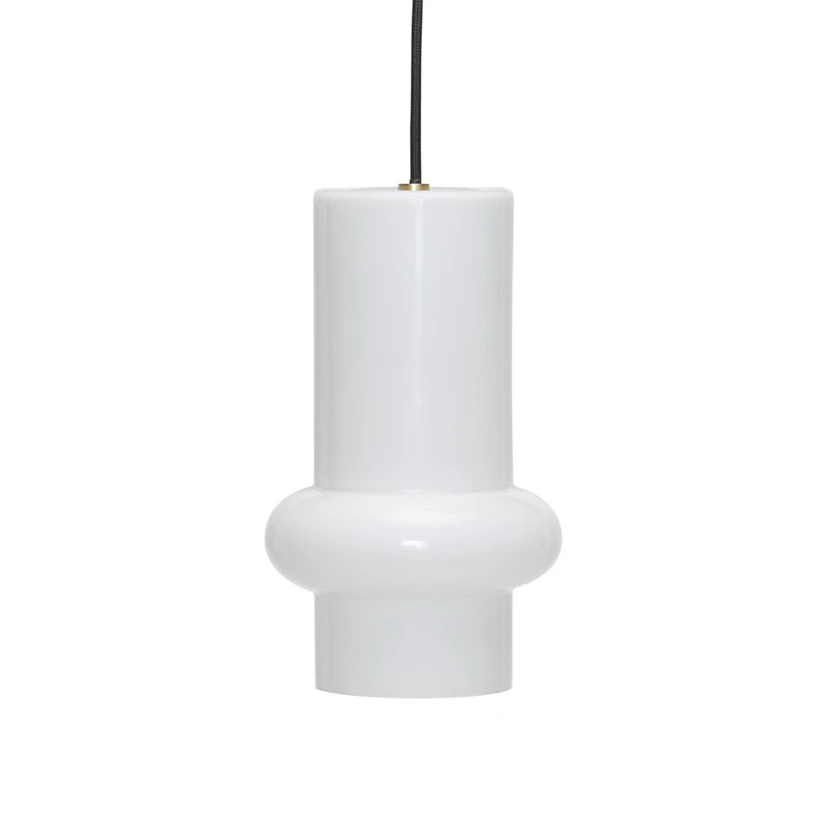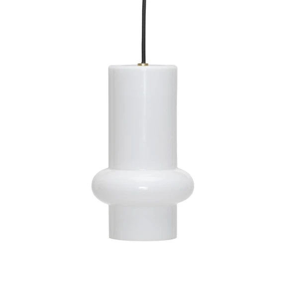 Żyrandol Pilule Down z błyszczącym białym kloszem z ręcznie dmuchanego szkła