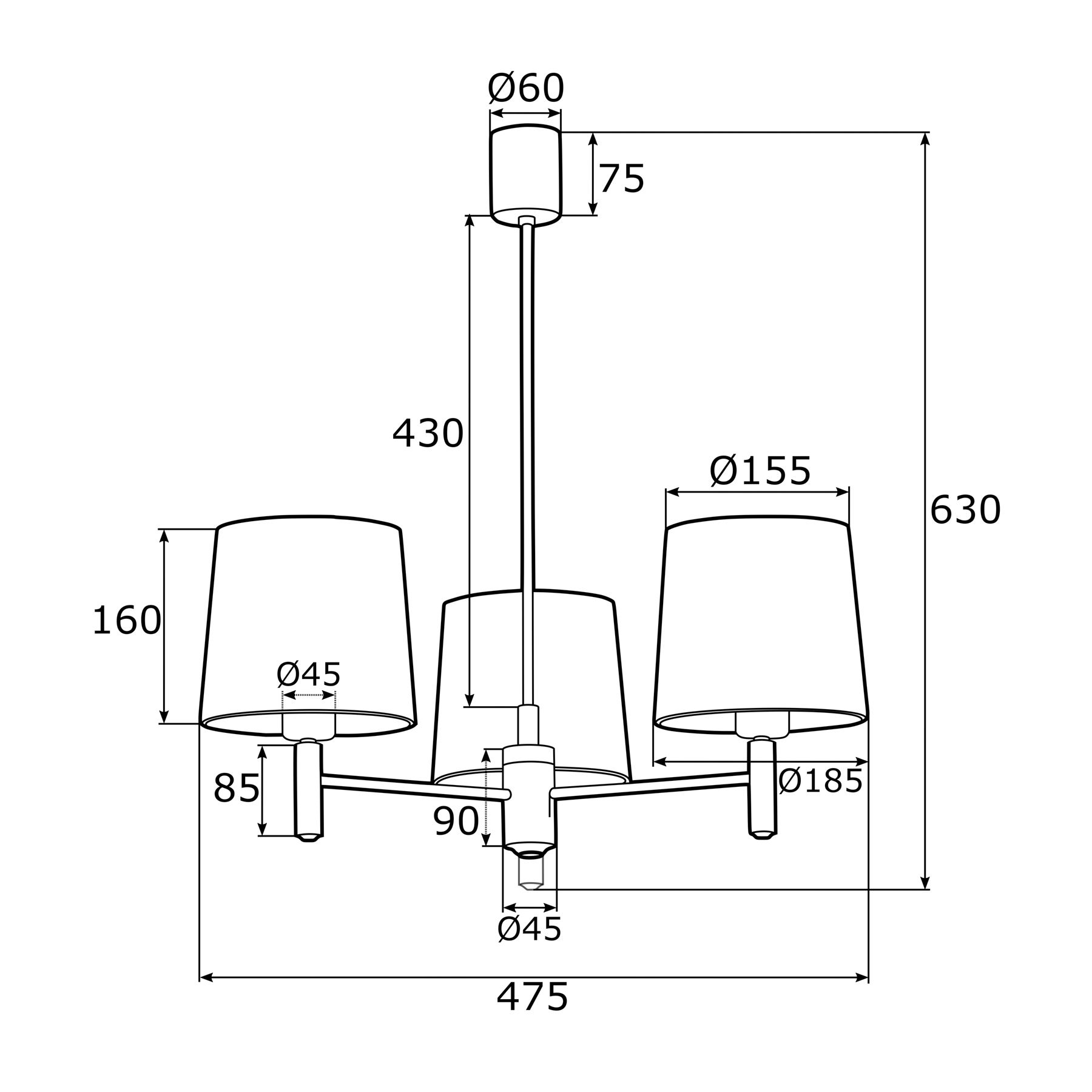 - Rozeta - średnica 6 cm, wysokość 7,5 cm; klosze - średnica 18,5 cm, wysokość 16 cm
